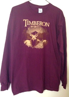 Gray-green or Maroon long sleeve T-Shirt with Elk artwork and “Timberon New Mexico” on the front side. 50/50% cotton polyester blend. Price: $20.00 plus tax